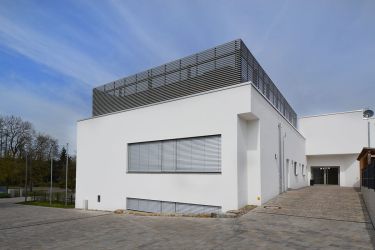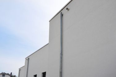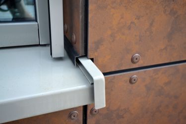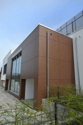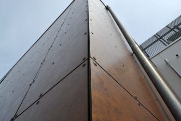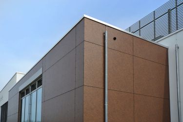 Vorgehängte, hinterlüftete Fassade mit Hochdrucklaminatplatten.