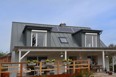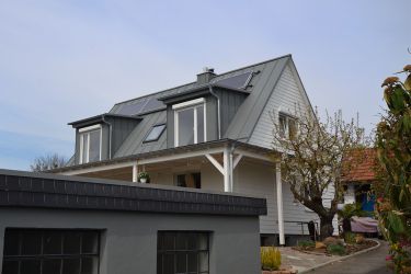 Besonderheit: Verkleidung der geamten Dachfläche inklusive Gauben und Vordach.