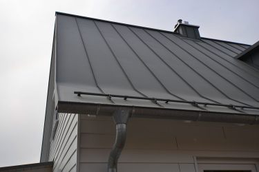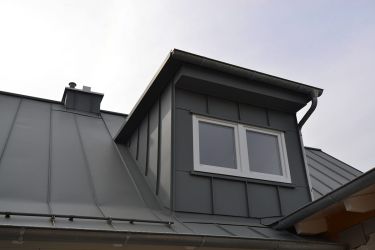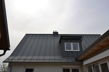Dacheindeckung mit farblich beschichteten Aluminiumblech in Stehfalztechnik.